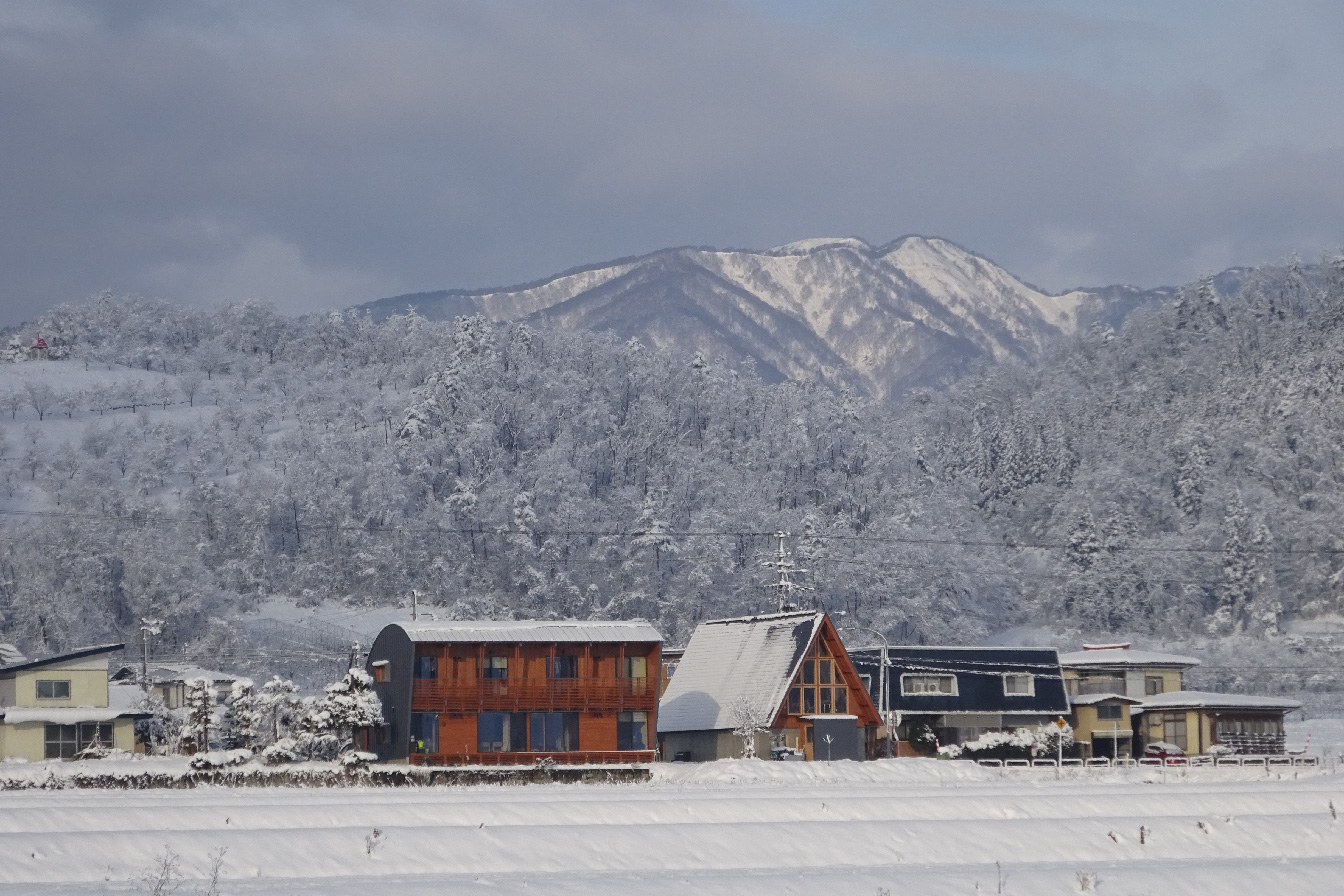 パンジャム工房を併設しながら、春まで雪を纏う家づくり。雪下ろしや除雪排雪いらずの雪囲い仕様。住まいは、曾孫までの4世代居住をコンパクトにまとめる間取り。工房は、小規模ながら、パンづくり、ジャム瓶詰、本業の宅配牛乳保管冷蔵庫。2階は将来のカフェ空間と機能満載。正に働く建築づくりがテーマ。村山のあんばいいい家づくりは、おでんやでんがくの鍋物の様に、素材の味を損なわず、他の具材つまり地域と調和する、しなやかな家づくりをめざした。