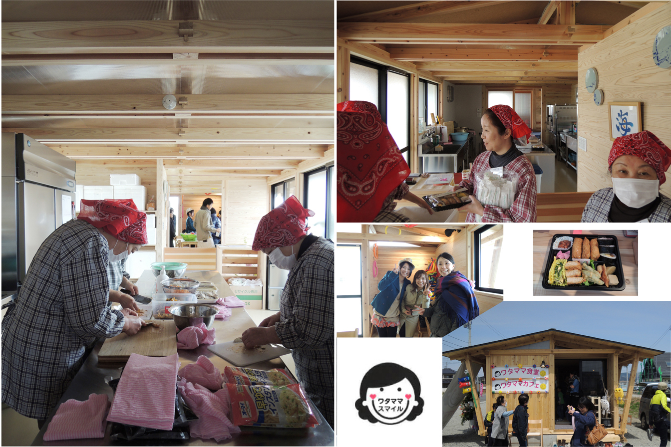 震災直後から自らも被災者でありながら、炊き出し活動など地元の被災者のために尽力し、地域の復興と家族や子供のために懸命にがんばってきたお母さん(ママ)方。8ヵ月後にはNPOを立ち上げ「ワタママ食堂」をオープン、仮設住宅の人々に毎日手作り弁当の宅配を行ってきましたが、店舗の解体により惜しまれつつ閉店。直後から地域の人々の再建への強い熱望を受け、資金面での様々な紆余曲折を乗り越え、再び再建の道筋が開きました。沿岸から200m、敢えて津波に被災し、何もない土地にもう一度まちが戻り、ばらばらになった地域の絆が取り戻されることを願い「ワタママ食堂」を再建することになりました。地元、宮城・栗駒産杉材100%の木のぬくもりあふれるZigハウスです。