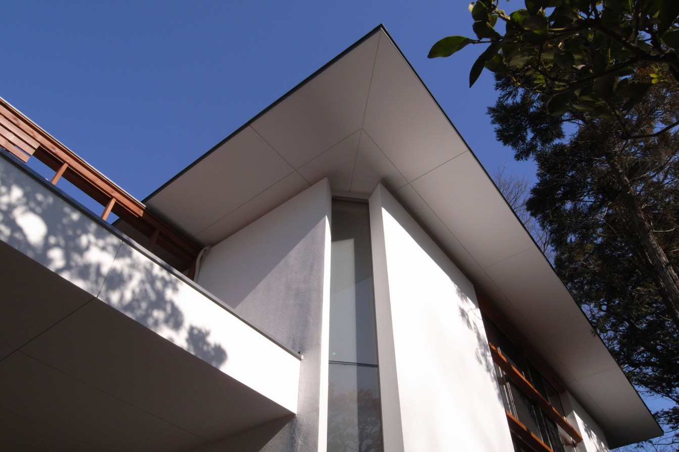 東京・狛江の、緑豊かな境内に建つMJ院の庫裏別棟。何はともあれ、私達の木は木で組む屋台骨づくりが、本殿や客殿、更には寺務所や庫裏母屋等の建築環境の中において、対比的調和する風景づくりを心掛けた。今後自然素材が故の各部材のわがまま変形などに対応しながら、住職家族の暮らし向きをしっかり育む道具立てになることを願っている。
