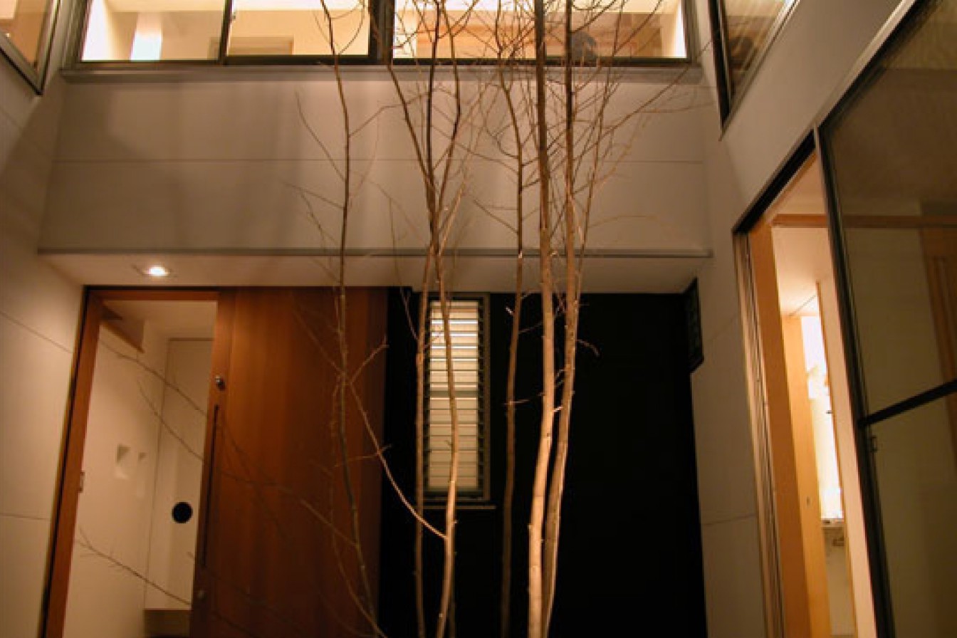 場所は読み込む程にデメリットがメリットに見え出す。典型的旗竿敷地で、四周家が建て込み陽当り通風は良くない。しかし要塞が立ちはだかっている訳ではない。随所に隙間がある。旗竿部は奥行きある専用路地としてのアプローチ。これだけの天空面積があれば、陽と風のエネルギー化も考えよう。住宅密集地、狭小地、そして旗竿地と都市住宅環境の憂鬱も、場所の読み方で、永く住み継ぐ為のプログラムづくりはほとんど可能ではないだろうか。